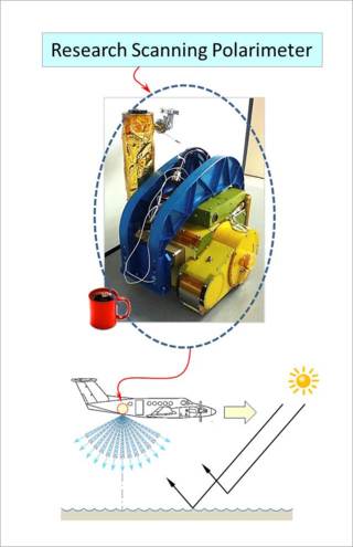 Scientists from City College of New York will also operate an underwater system to measure polarization of light below the ocean surface. The system is connected to a buoy and has computer controlled thrusters for the proper orientation with respect to the sun. Together, measurements from above and below the water will be compared with data from the airborne polarimeter.