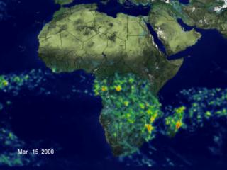 An animation of daily rainfall measurements from TRMM for the period August 18, 1999 through March 15, 2000, zooming into Africa to show the increased precipitation that caused the flooding in Mozambique